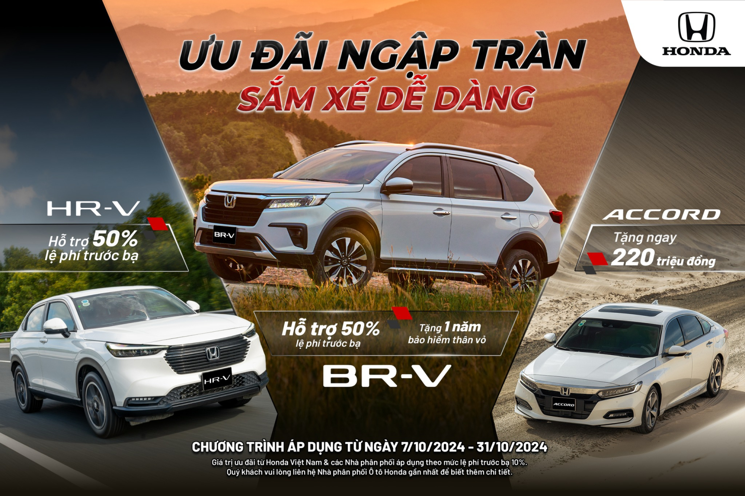 Chương trình khuyến mại hấp dẫn từ ngày 07 đến hết ngày 31 tháng 10 năm 2024 dành cho các dòng xe Honda BR-V, Honda HR-V, Honda Accord.