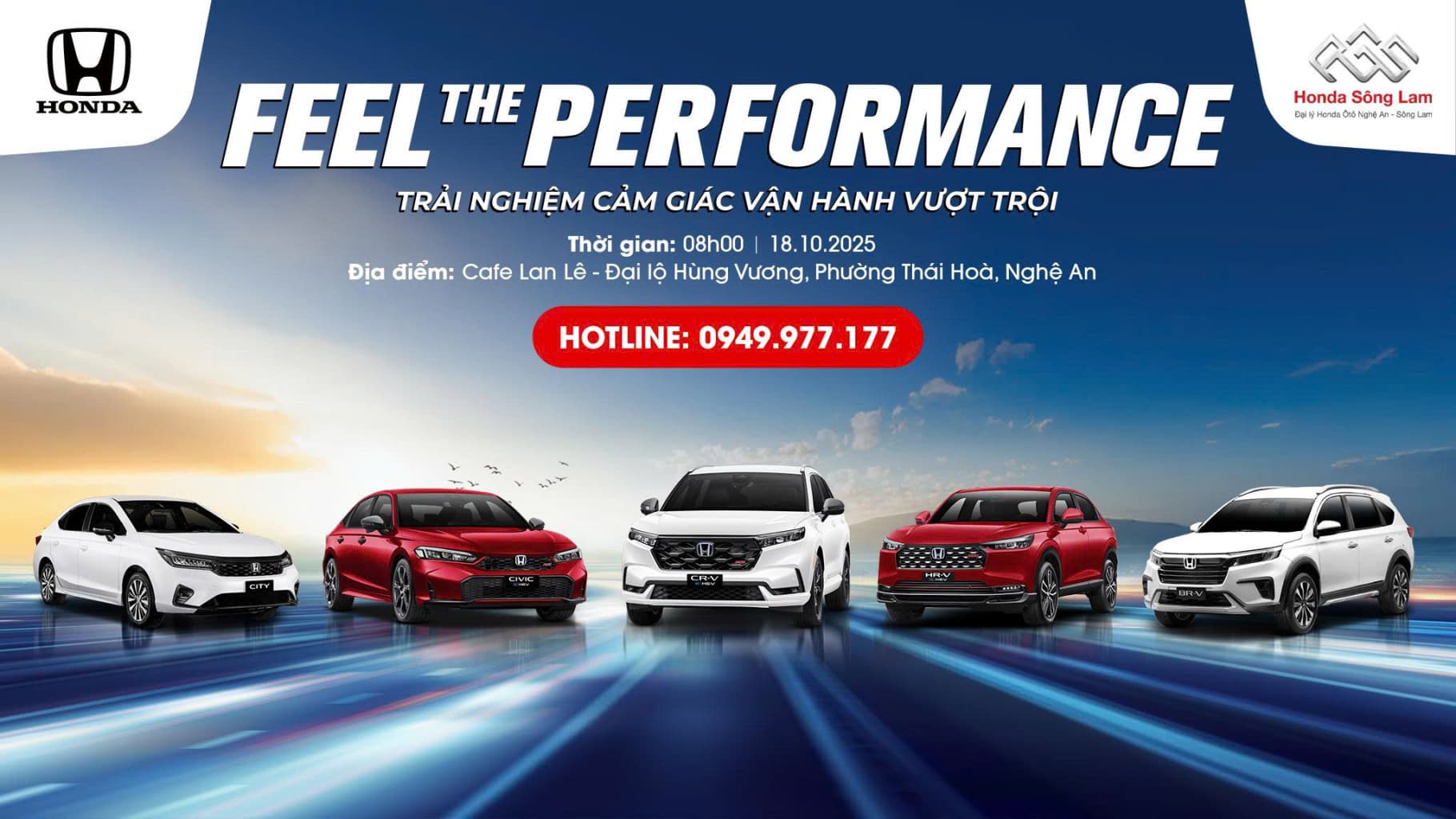 Honda Ô tô Sông Lam kính mời Quý khách hàng tại phường Thái Hoà và các vùng lân cận đến tham gia sự kiện lái thử xe Honda – nơi cảm xúc sau tay lái được đánh thức mạnh mẽ hơn bao giờ hết!