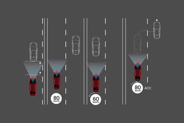 - ACC with LSF – Hệ thống kiểm soát hành trình thích ứng bao gồm dải tốc độ thấp. Duy trì khoảng cách an toàn với xe phía trước, ngay cả khi di chuyển trong điều kiện giao thông chậm hoặc kẹt xe, mang lại sự thoải mái cho người lái.